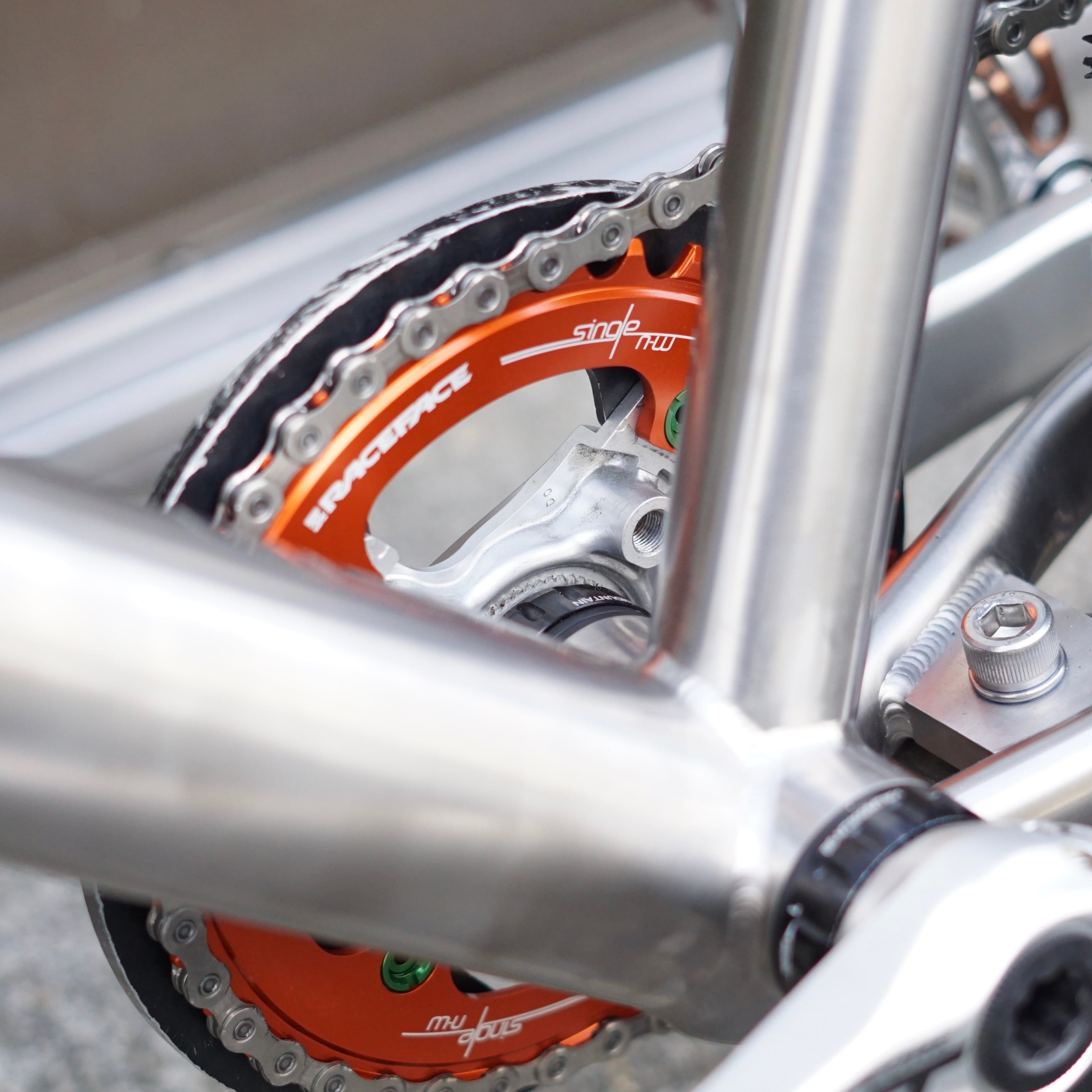 ナローワイドチェーンリングを使用することにより、フロントシングルでもチェーンが脱落しづらいです。