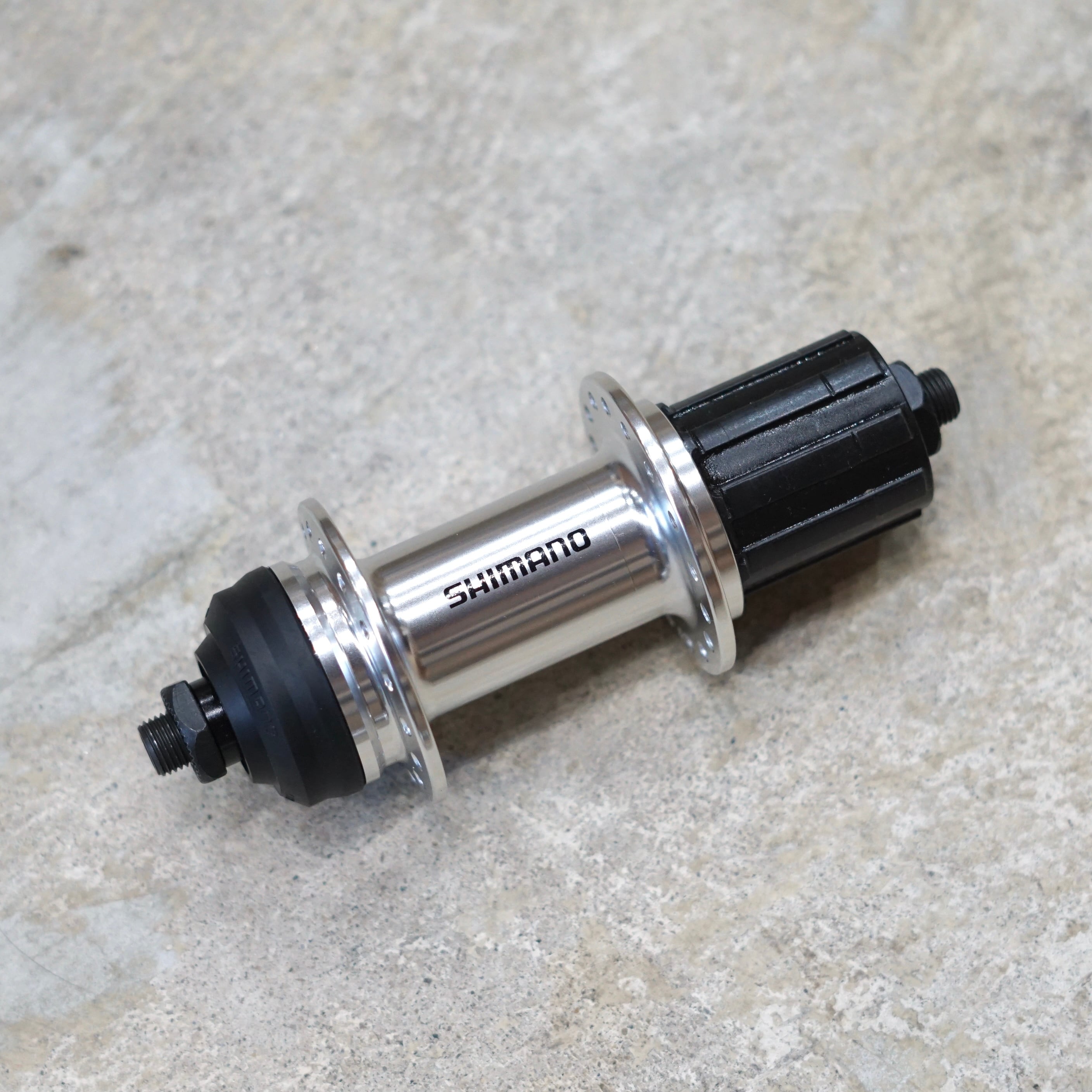 Shimanoが展開する「CUES」コンポーネントグレードのシルバーポリッシュハブ。